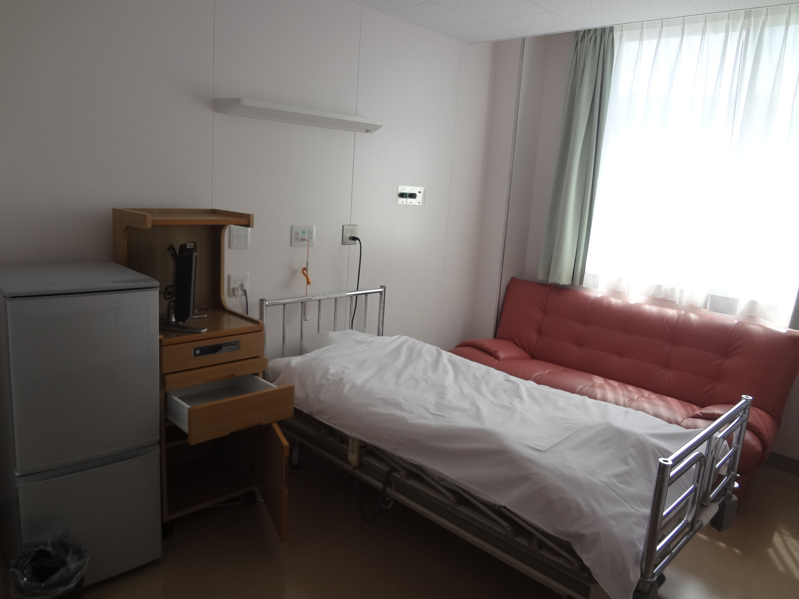 有料個室も増やしました。独立した冷暖房を自由に使用していただいたり、それぞれの部屋にトイレを配置するなど、落ち着いた療養生活ができるように配慮しています。